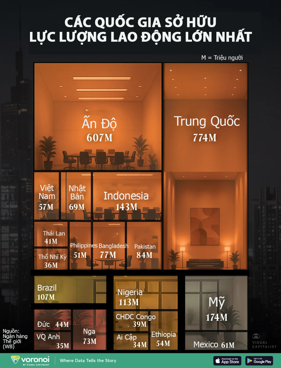 Những quốc gia sở hữu lực lượng lao động lớn nhất, Việt Nam cũng có mặt (22/10/2025)