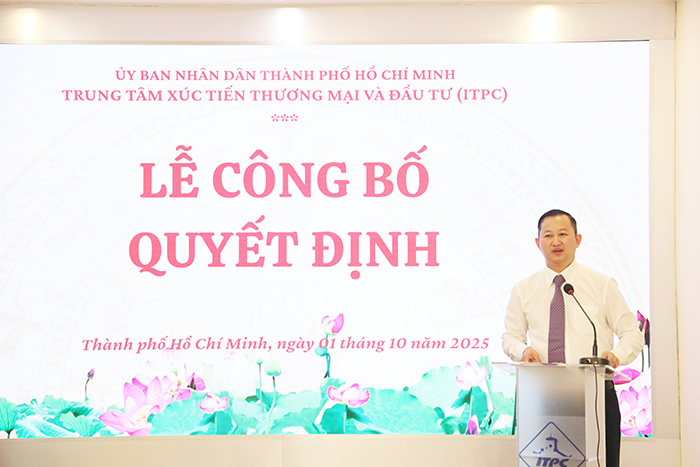 TP.HCM, ngày 01/10/2025 - Trung tâm Xúc tiến Thương mại và Đầu tư TP.HCM (ITPC) đã tổ chức Lễ công bố quyết định tổ chức lại các phòng chuyên môn và quyết định nhân sự, đánh dấu bước tái cơ cấu sau chủ trương sắp xếp đơn vị hành chính cấp tỉnh.